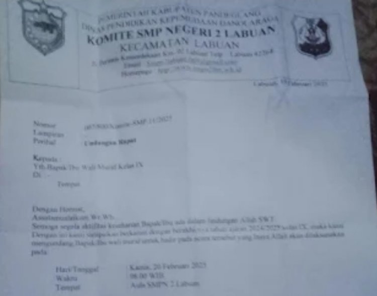 Pasalnya Sejumlah orang tua Siswa mengeluhkan iuran Perpisahan Kelas 3 SMPN 2 Labuan sebesar Rp. 500.000,- per siswa, yang telah ditetapkan melalui rapat komite sekolah bersama para orang Siswa Kelas 3 Tahun Pelajaran 2024-2025, pada Kamis (20/02/2025).