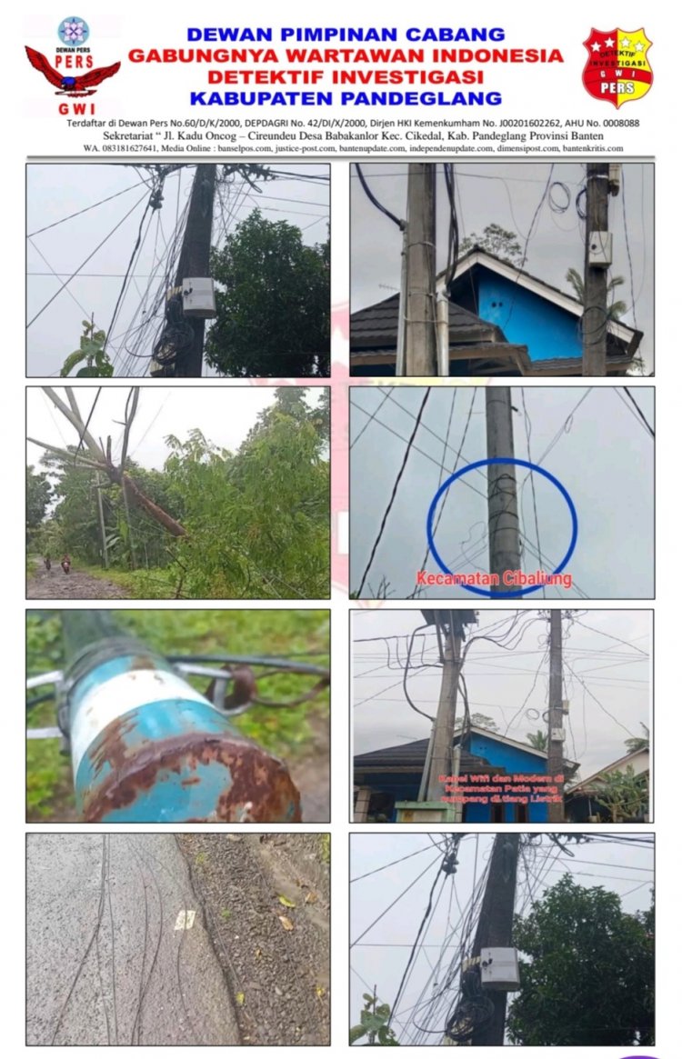 redaksi-one.com, Pandeglang, Banten, | Dewan Pengurus Cabang Gabungnya Wartawan Indonesia (GWI) Kabupaten Pandeglang Menyoal Maraknya pemasangan kabel wiffi di wilayah Pandeglang – Banten menjadi polemik bagi masyarakat sekitar, pasalnya pemasangan kabel wiffi menempel di tiang listrik milik PLN.